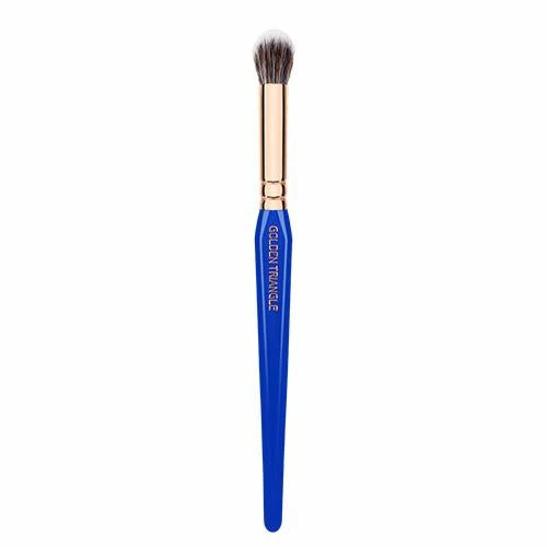 Bdellium Tools Golden Triangle Brushes for Eyes. Each brush is made of all-vegan soft, synthetic bristles with triangular-shaped handles. The Blue lacquered wooden brush handles are ergonomically designed to provide better control and will not roll off from the surface.