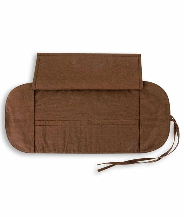 Made from eco-friendly linen material. There are 20 pockets to accommodate varying sizes of brushes, plus 4 side pockets to store small or loose items in place. Pouch has a dark brown tone to keep the look earthy and natural yet professional and stylish. End strands available to securely tie and close the pouch. It is perfect for students, makeup artists, or anyone who loves makeup! Whether you are on vacation or traveling for work, this case will protect your brushes for long-term use.