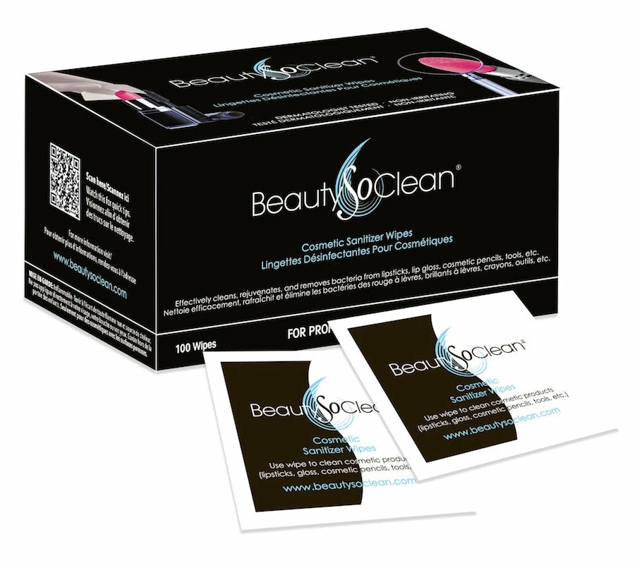 The individually wrapped, non-woven, Cosmetic Sanitizer Wipes are effective for sanitizing makeup that accumulates visible debris such as dust, lint and food particles. They clean, and refresh makeup without altering the products formula. The wipes do not dry out, crack or alter the colour of the makeup. Proven effective against viruses & bacteria in 15 seconds. Recommended for use on products such as lip gloss, lip balm, cosmetic pencils, liquid liner and mascara wands. Can also be used to sanitize concealer and foundation.