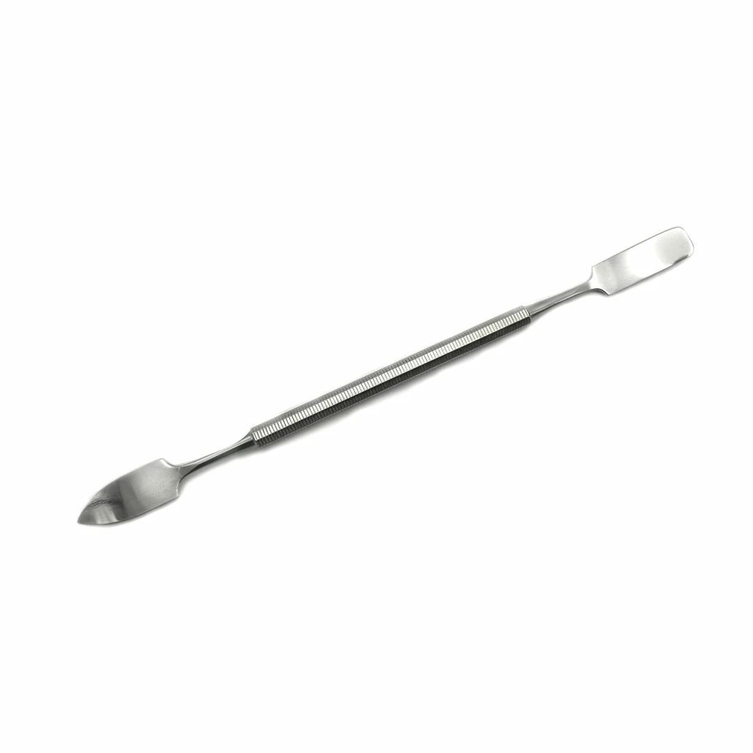 Each end is slightly curved to remove product from hard to reach container corners. The spade shaped end allows you to mix custom foundation s and allows special effects artists to shape wax or clay with ultimate precision.