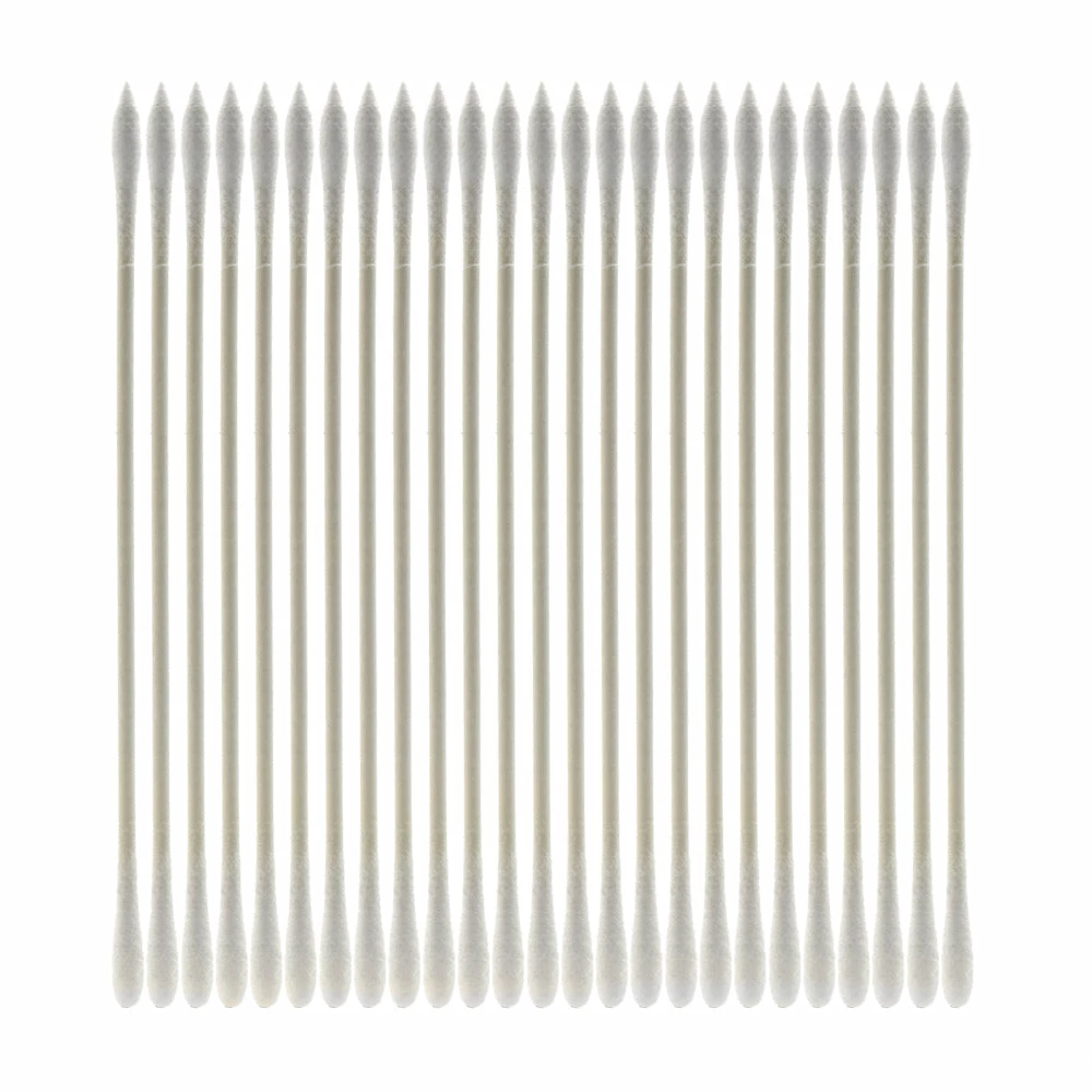 With a pointed tip on one end and a rounded tip on the other, this dual ended mini precision swab with paper handle is ideal for reaching small areas during makeup application.
