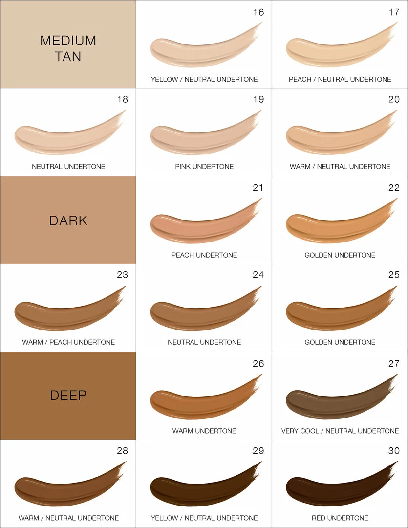 Dose of Colors Meet Your Hue Concealer is a full-coverage, vegan, cruelty free product that’s great for multitasking and has a lightweight, easy-to-blend formula. Conceals dark undereye circles, blemishes, and other skin imperfections. Available in 30 all-inclusive shades. Six different complexion categories: fair, light, light medium, medium tan, dark, and deep. Each category features five different concealer shades.