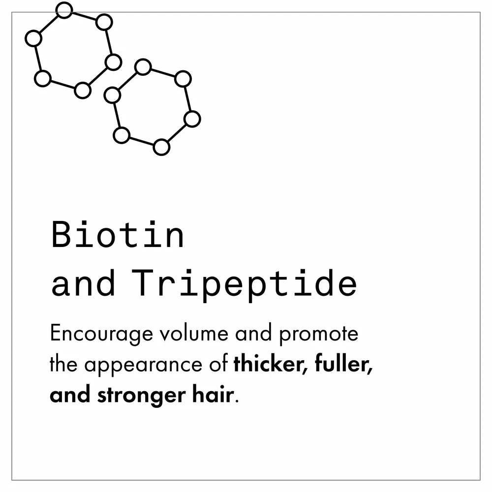Biotin & Tripeptides strengthen strands, add shine and improve health of hair.