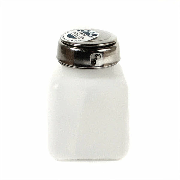 Simply push down on the metal top to pump clean fluid up into the metal “bowl” at the top. Wipes clean and locks shut for zero spillage. Strong enough to hold even acetone!