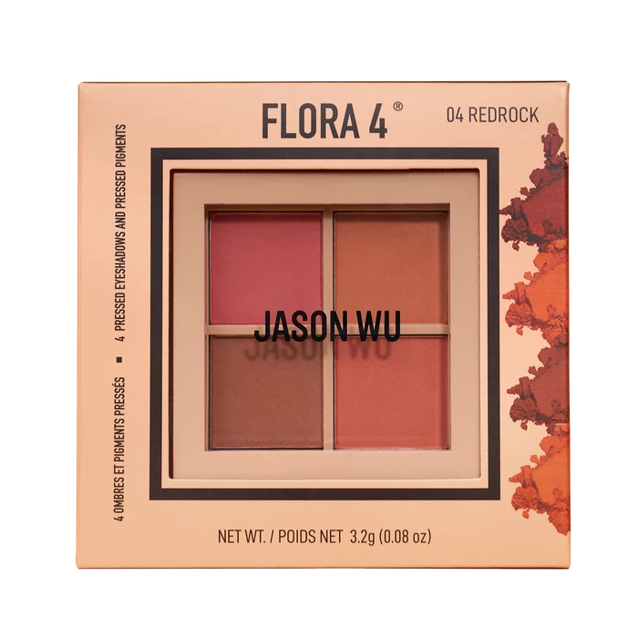 Flora 4 in 04 Red Rock is a versatile artistry palette with 4 brilliant shades that are fully pigmented, easy to blend and buildable. With a beautifully curated palette of warm, desert landscape tones, this palette is perfect for creating sultry looks for both day and night.