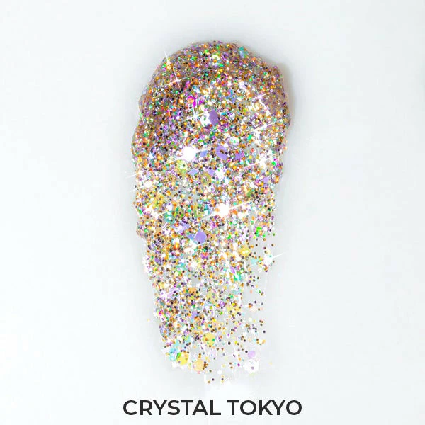 Crystal Tokyo – Blend of holographic warm and cool metallics interlaced with prismatic diamonds.