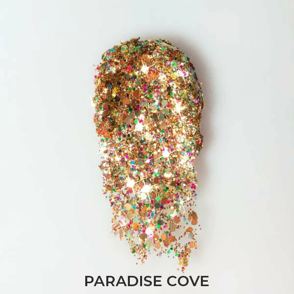 Paradise Cove – Mix of chunky golds and coppers with sparks of magenta.