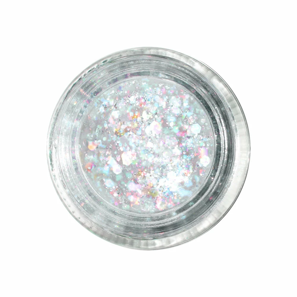 White Rabbit – Shifts from a sheer opal to rainbow quartz in different lighting. Contains an intense blend of multi-tonal cosmetic glitters in multiple sizes.