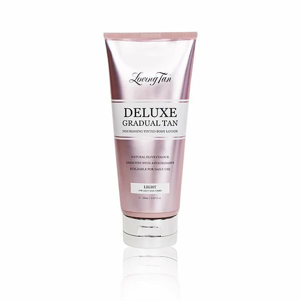 Loving Tan Deluxe Gradual Tan is a luxuriously lightweight lotion giving you a natural looking bronzed glow all year round. Containing skin enriching antioxidants Acai Berry and Coffee extract, this nourishing formula enhances your skin while a natural, luminous tan develops.