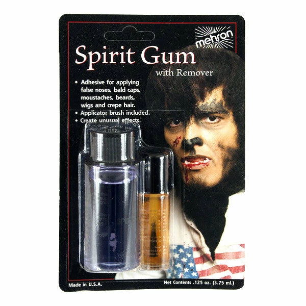 Mehron’s Spirit Gum is a professional liquid adhesive for adhering crepe hair, wigs, bald caps and other special FX appliances.
