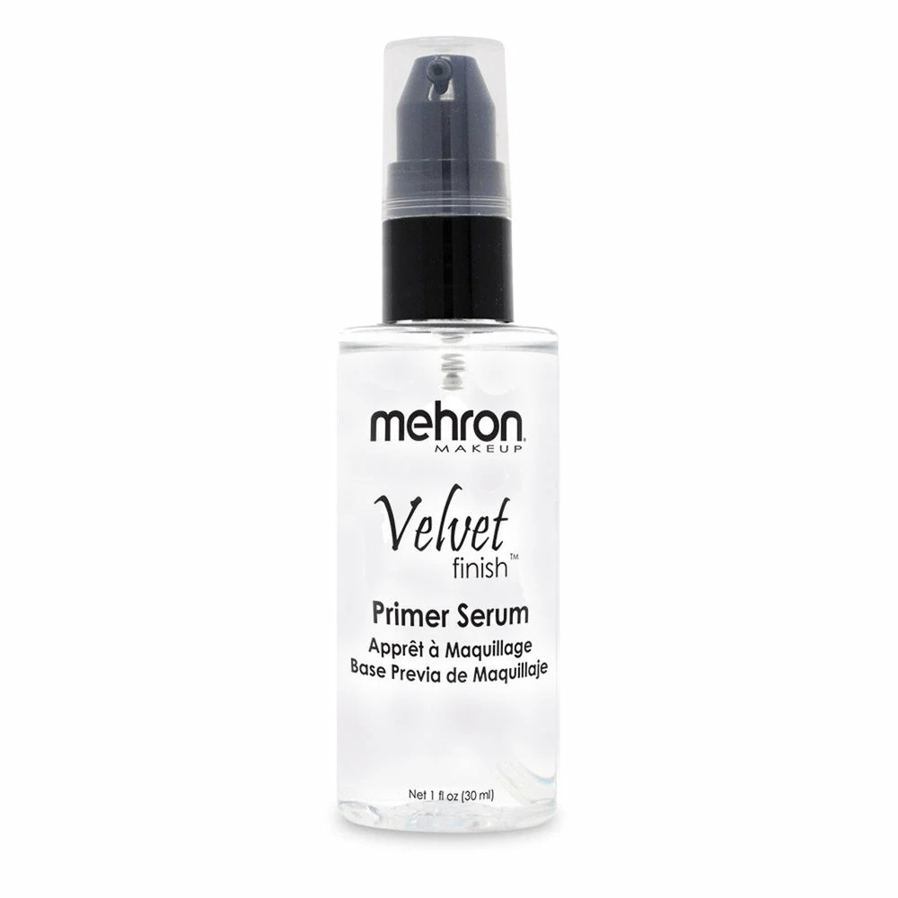 Mehron’s Velvet Finish Primer Serum is the result of intensive research done by the Mehron Team. The researchers and chemists at Mehron got to work and formulated a fully-stabilized Vitamin C Complex that resists normal breakdown from air, heat and moisture. Of course, they didn’t stop there! Aloe Vera Extract and Vitamin E were added to repair, soothe, and hydrate the skin. This proprietary formula creates a smooth, even skin texture which can be worn alone or under foundation, such as Mehron’s Celebré Professional Makeup.