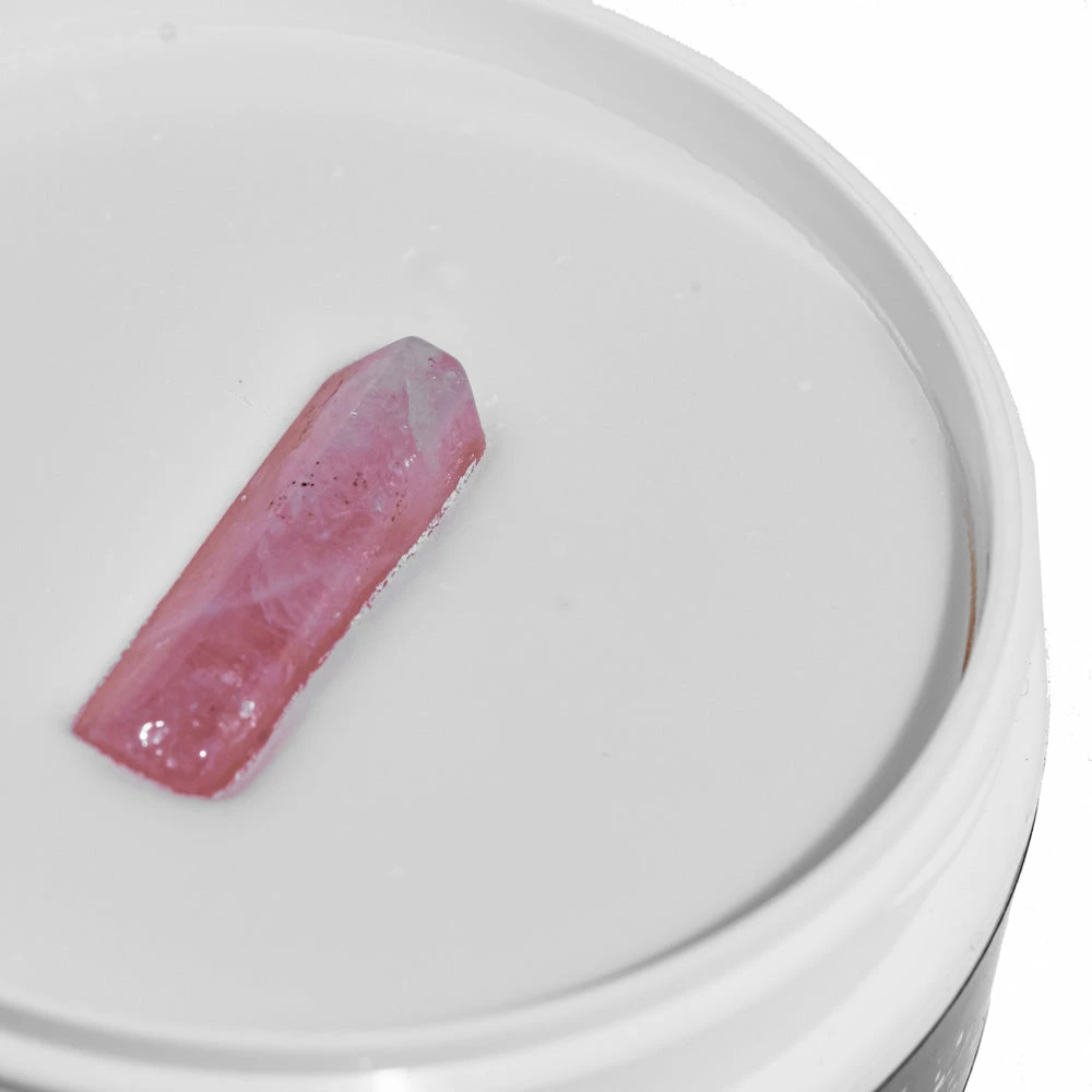 A deep cleaning vegan brush soap that cleans your brushes and releases past energy while infusing your tools with love that vibrates from a Rose Quartz Crystal placed on top. A tantalizing scent of sweet mango nectar, wild currant, with a hint of bergamot tea and sea salt