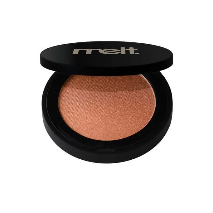 A sublime sun-kissed glow. Sweep this blush shade across the cheeks, temples, chin and the bridge of the nose for a “just left the beach” sandy gold luminous glow.