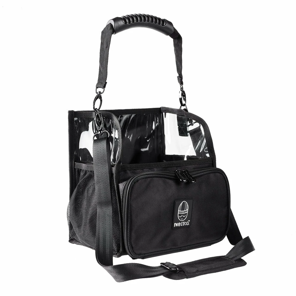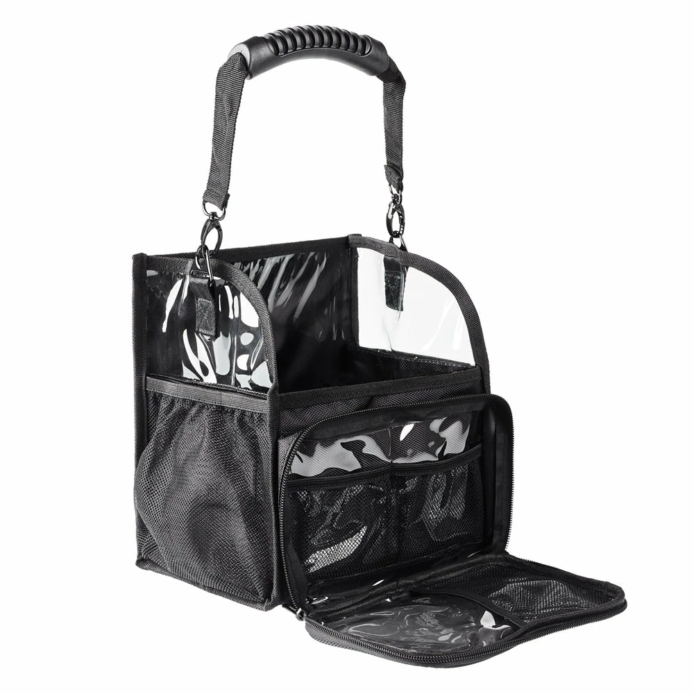 The perfect home for My Brush Buddy offers you extra storage options. Carry it your way with an easy grip handle and a detachable & extendable shoulder strap. The tough and durable canvas keeps the bag looking great whilst extending the life of your makeup kit. Heavy duty PVC side panels allow you to see the contents of your buddy through extremely durable, high grade PVC windows. A canvas back band creates a no fuss approach to hold the lid of the Brush Buddy back for easy access whilst on the job, and can be used for hair grips/accessories. The band is also designed to secure the buddy onto a larger kit or case for easy transportation.