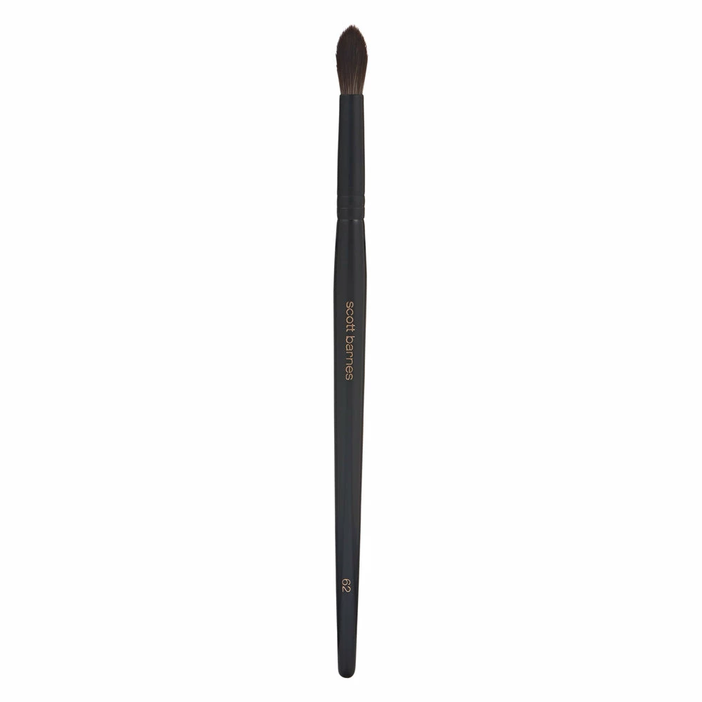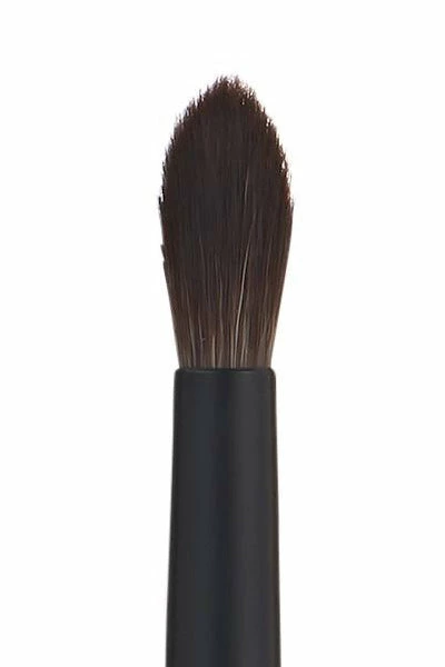 Round, tapered blending brush to blend powder shadows. The head shape and fibers provide ease of application in the crease area.