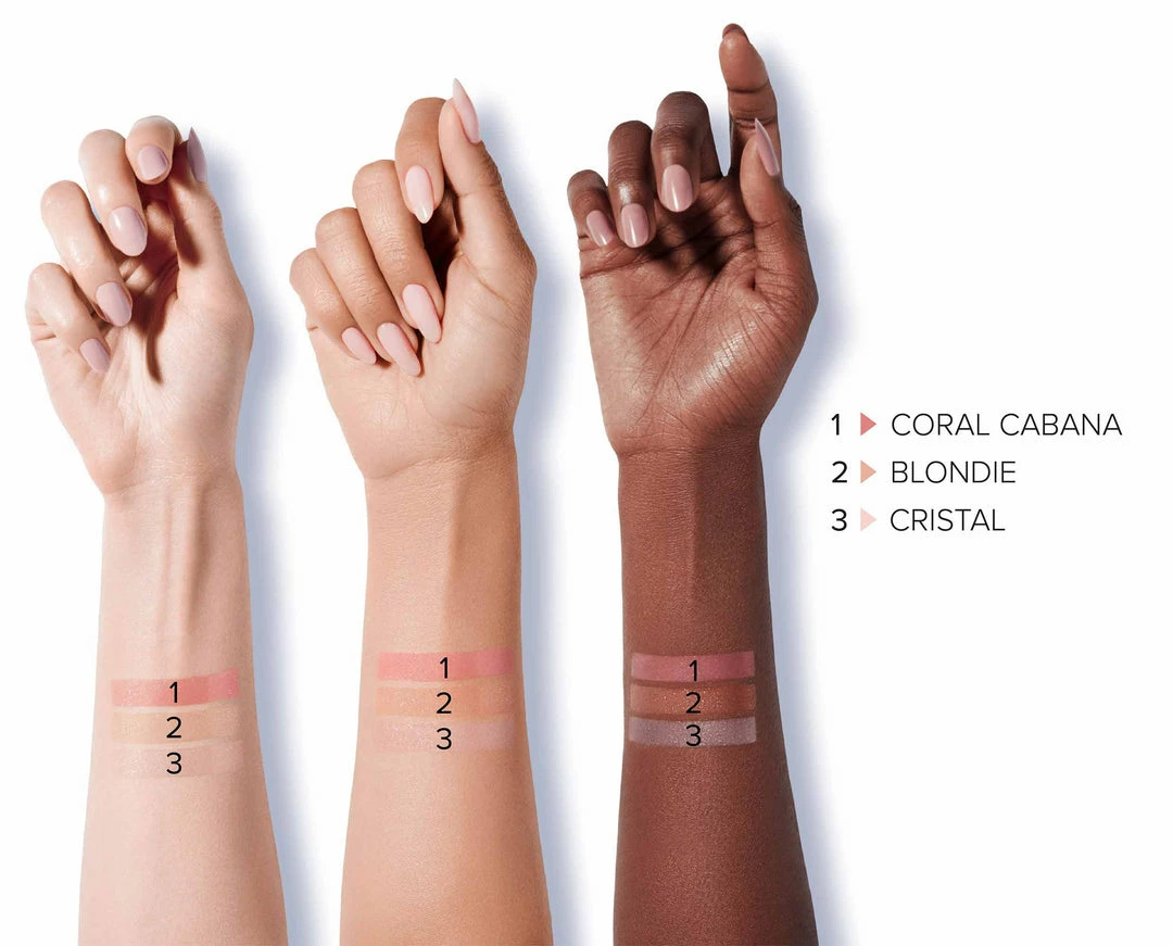 Scott’s go-to, high-shine gloss is back in the Summer Sizzle Edition, which includes three brand-new shades inspired by Scott’s favorite colada: Cristal, for a perfect hint of clear sheen; Blondie, a sweet and saucy shimmery nude and juicy Coral Cabana for that pop of color. Wear them each individually, or layer Cristal over Blondie or Coral Cabana to amp up that gloss factor and create a sultry lip look.
