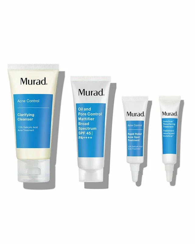 Four-piece trial-size kit that helps minimize acne breakouts & scarring ($53.00 value).