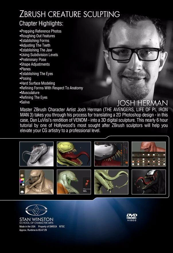Learn ZBrush creature sculpting techniques with character designer Josh Herman (Iron Man 3, The Avengers, The Amazing Spider-Man).