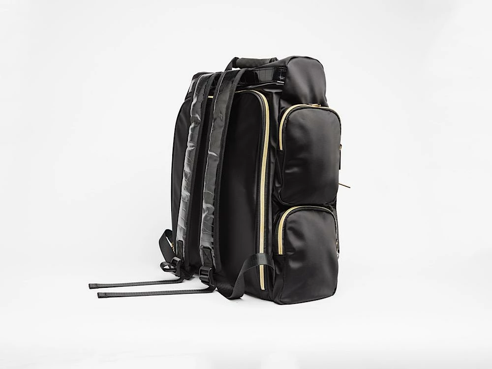 This gorgeous bag is draped in nylon and crocodile embossed vegan pu leather, with a large front exterior carry-all pocket. The backpack is enveloped by 4 additional carry-all compartments on the side for additional space and storage. Two cushioned and lined straps support this unit while a crossbody strap make shoulder carry possible, with ease.